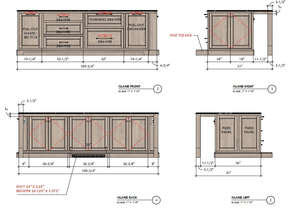 Our projects begin with in-depth spatial analysis and strategic planning, supported by detailed drawings, finish specifications, and cabinetry documentation that guide contractors clearly and minimize costly revisions.